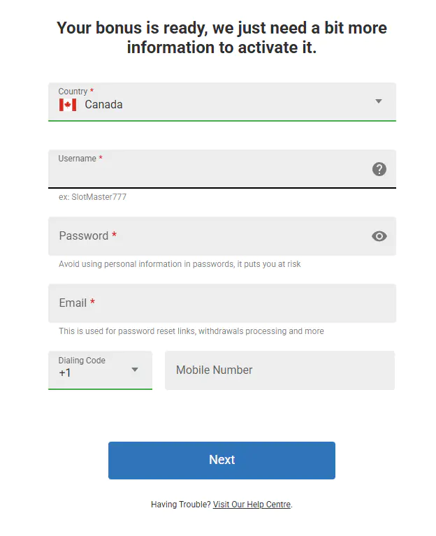 Creating an account at Ruby Fortune Canada is quick and straightforward. How to Sign Up: